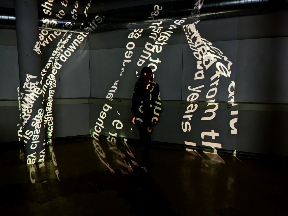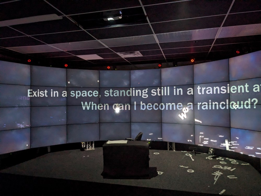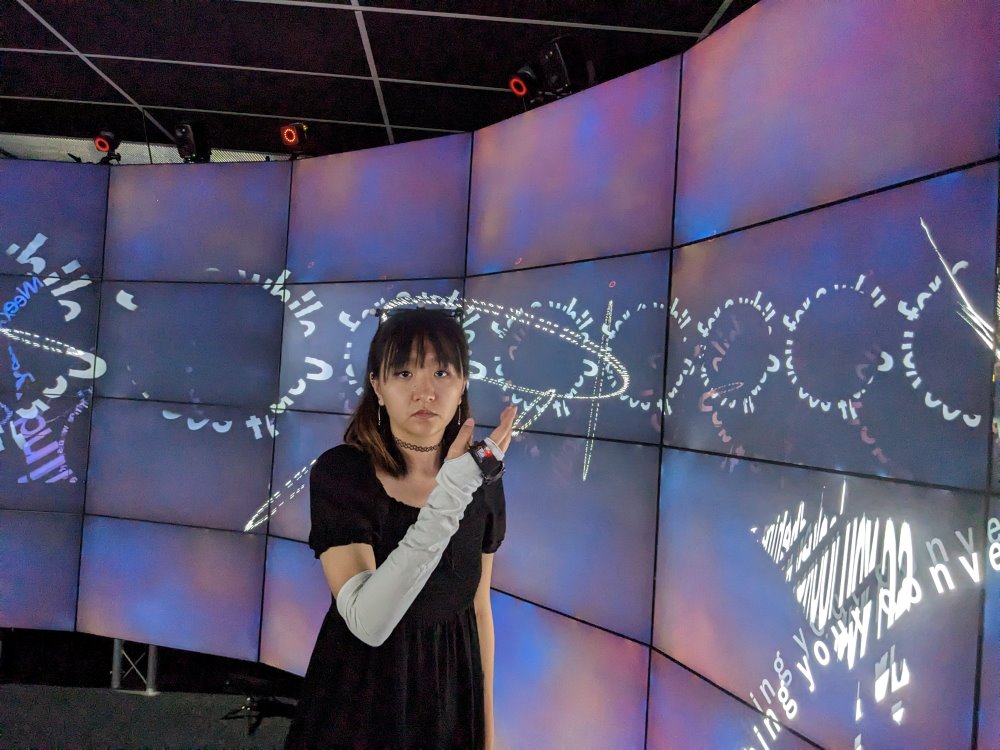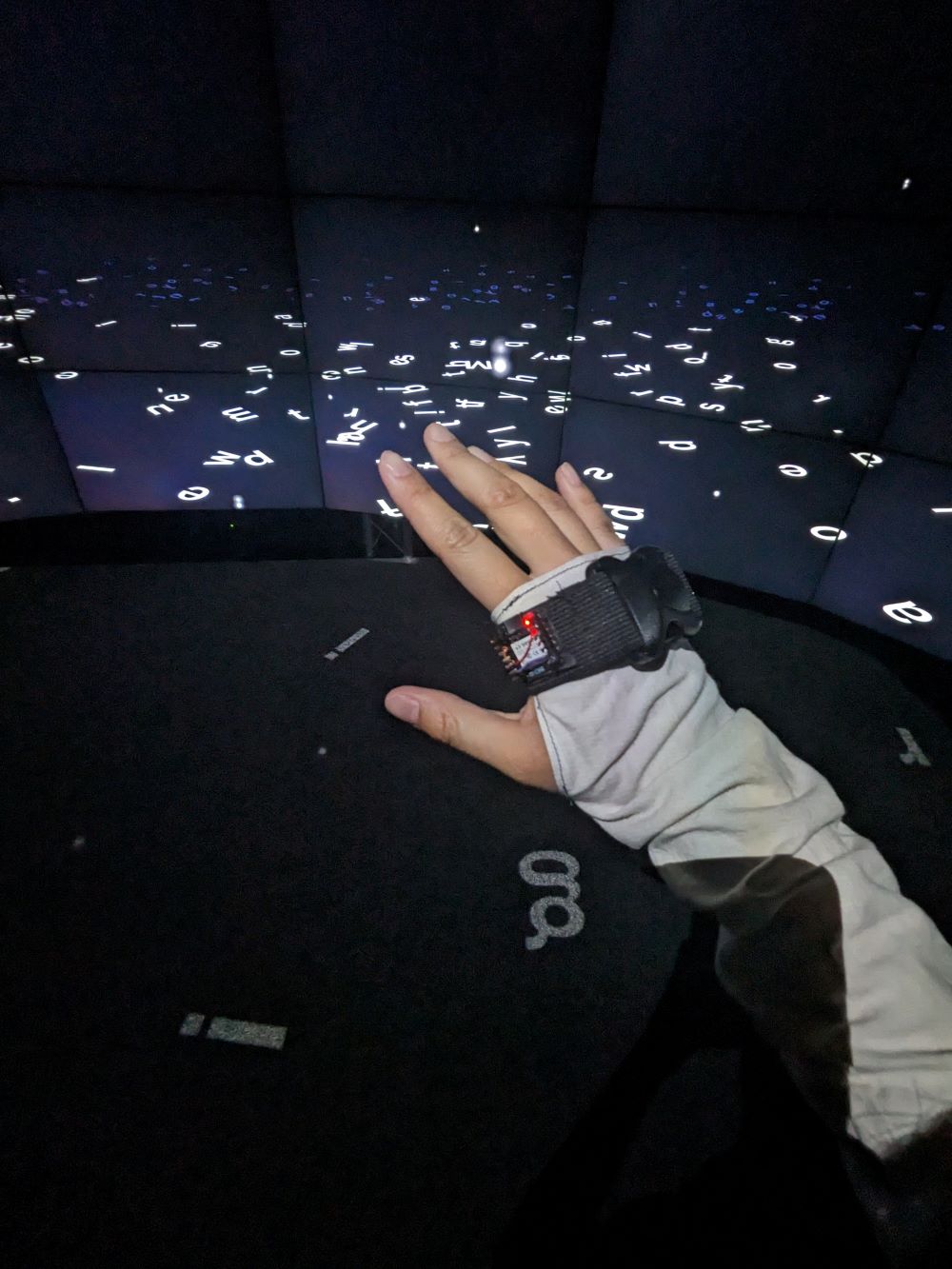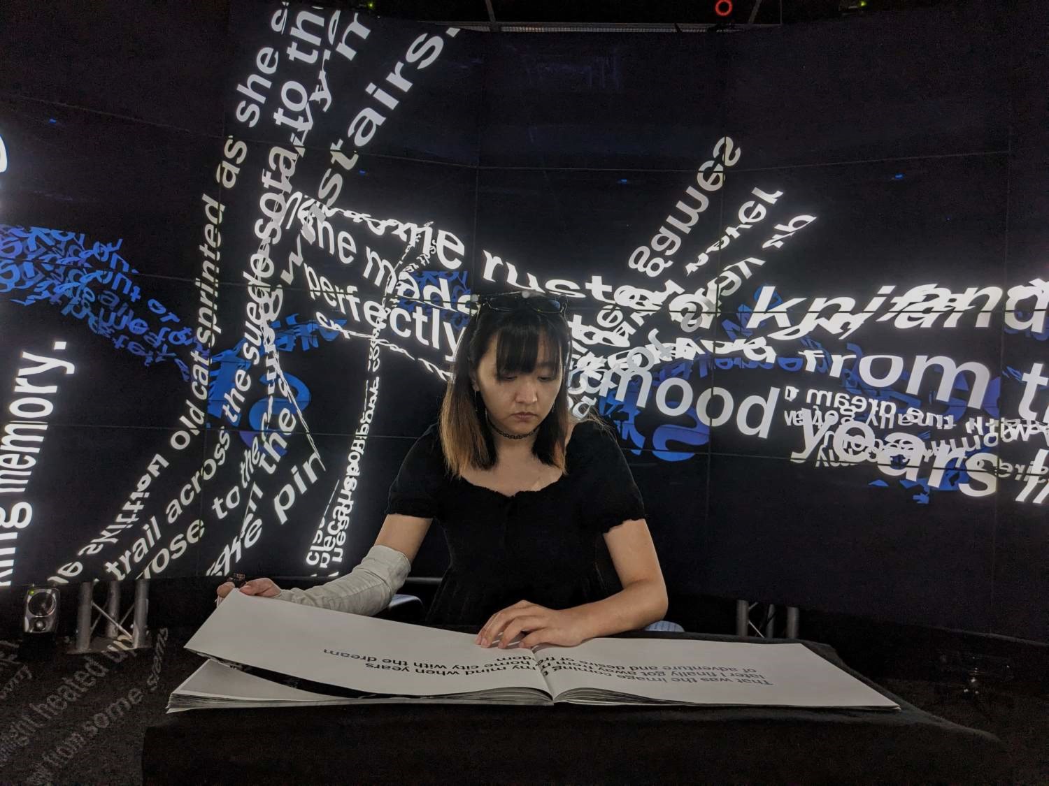 The project culminated into an audiovisual performance of my original writings, where the audiences were invited into the immersive space to observe me demonstrating my custom wearable device in real-time.