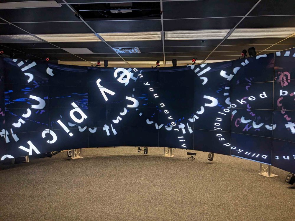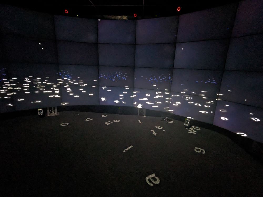 The work was performed at the CAVE2TM at the Electronic Visualization Laboratory (EVL) at the University of Illinois Chicago on May 5th, 2023, and a projector-based version was installed for the year-end show. I also presented the result at the TypeCon Education Forum in Portland on August 17th, 2023.